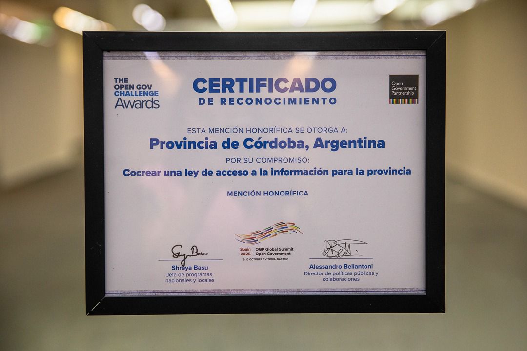 La Provincia de Córdoba, como miembro de la Alianza para el Gobierno Abierto (OGP, por sus siglas en inglés), fue reconocida en los Open Gov Challenge Awards, durante la Cumbre Mundial de OGP 2025