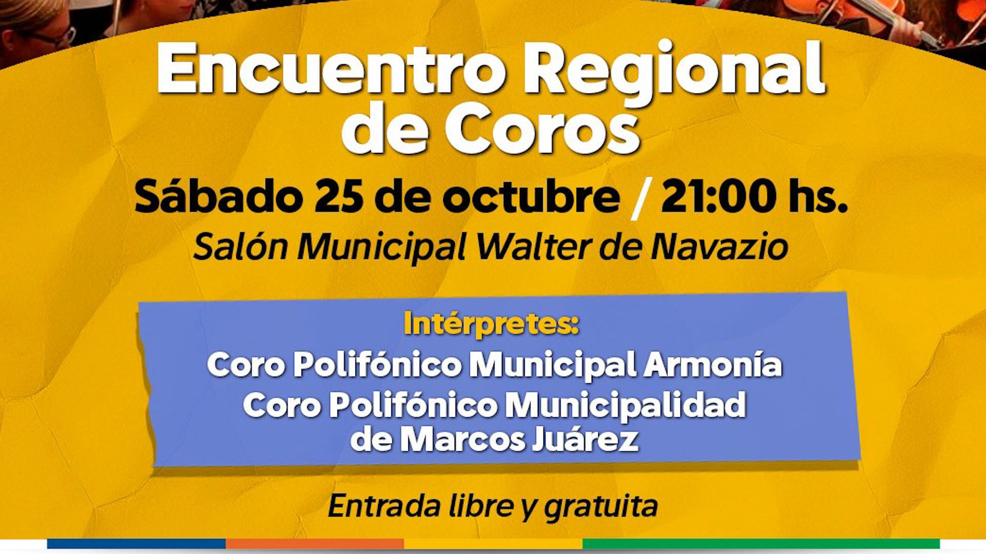El evento se realizará este sábado a las 21 horas en el Salón Walter de Navazio, con la participación de coros de Bell Ville y Marcos Juárez.