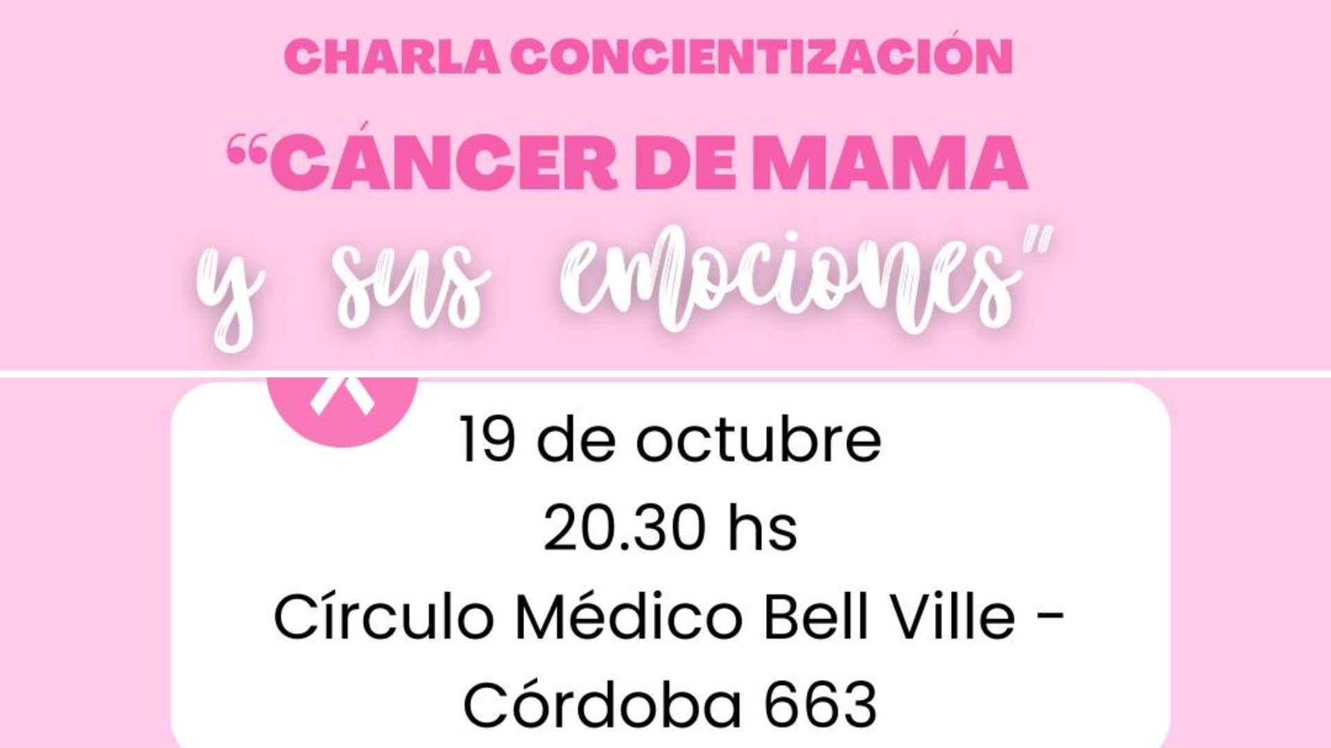 ESTE JUEVES A LAS 20.30 SE BRINDARÁ UNA CHARLA SOBRE CÁNCER DE MAMA EN EL MARCO DE LAS ACTIVIDADES DISPUESTAS EN EL MES OCTUBRE