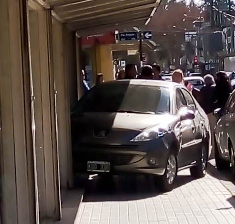 Fue en horas del mediodía. Por causas a establecer un Peugeot 207 subió a la vereda y terminó sobre la vidriera de un comercio.