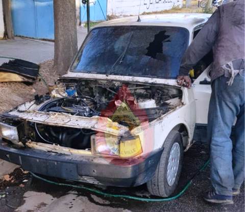 Principio de incendio en un automóvil en la vía publica