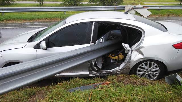 Un automóvil perdió el control e impactó con el guardarraíl. Son habituales accidentes en ese lugar los días de lluvia.