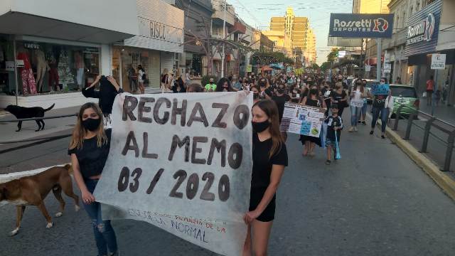 Docentes, directivos, estudiantes y ciudadanos en general se movilizaron por las calles de la ciudad en rechazo al memo 03/2020.