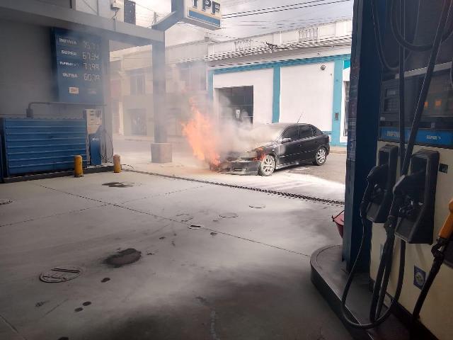 El vehículo tomó fuego dentro de la estación de servicio YPF de Ferrucci sufriendo importantes daños en el motor y habitáculo.