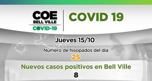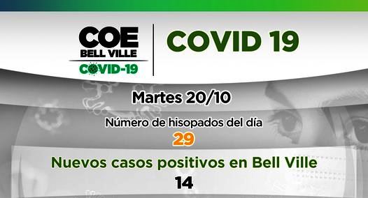El COE Bell Ville informa que hoy martes 20 de octubre, se reportaron catorce (14) casos de hisopados positivos de Covid-19.