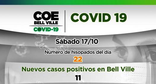 El COE Bell Ville informa que hoy sábado 17 de octubre, se reportaron once (11) casos de hisopados positivos de Covid-19