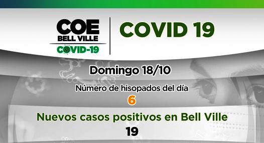El COE Bell Ville informa que hoy domingo 18 de octubre, se reportaron diecinueve (19) casos de hisopados positivos de Covid-19.