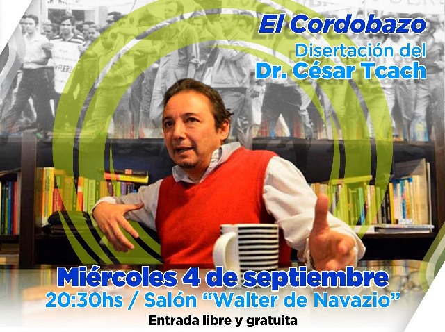 Disertará sobre el Cordobazo en el salón "Walter de Navazio" con entrada libre y gratuita.