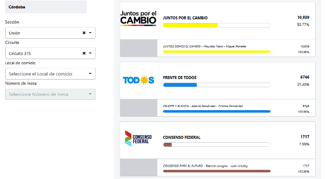 Es importante tener en cuenta aquí la presencia de la lista de candidatos de Hacemos Por Córdoba.