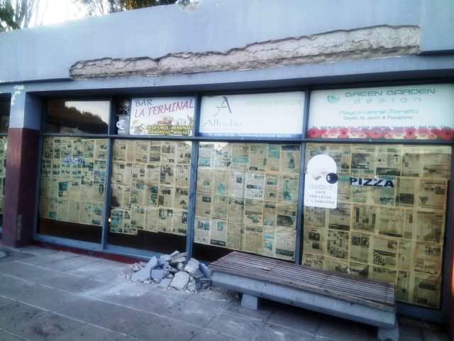Terminal de Ómnibus de Bell Ville: se cayó un bloque de manpostería sobre un banco