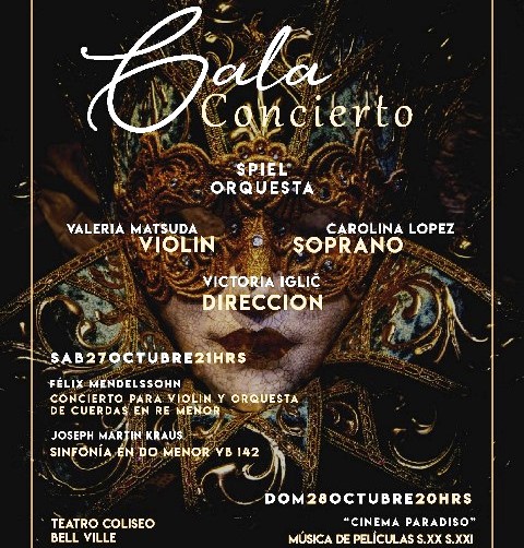 El sábado obras de Mendelsshon y Kraus y el domingo Música de Películas y de Cinema Paradiso.