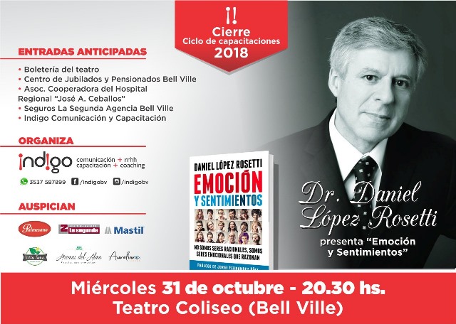 Presentará su libro "Emoción y Sentimientos" en el Coliseo desde las 20:30 hs. en el cierre del Ciclo de Capacitaciones 2018