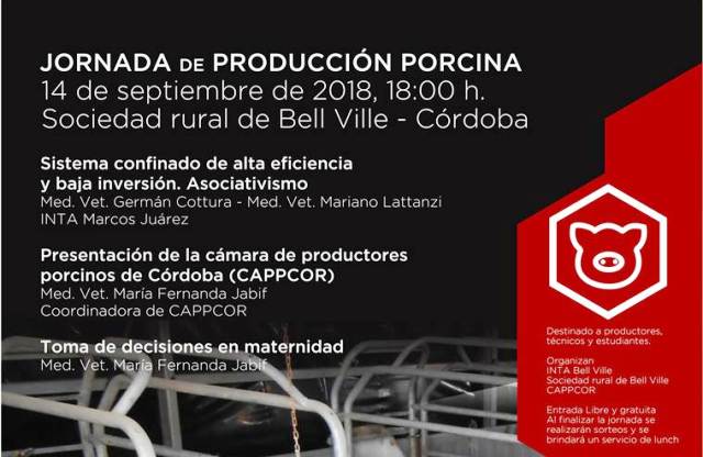 Se viene una Jornada de Producción Porcina organizada por el INTA Bell Ville