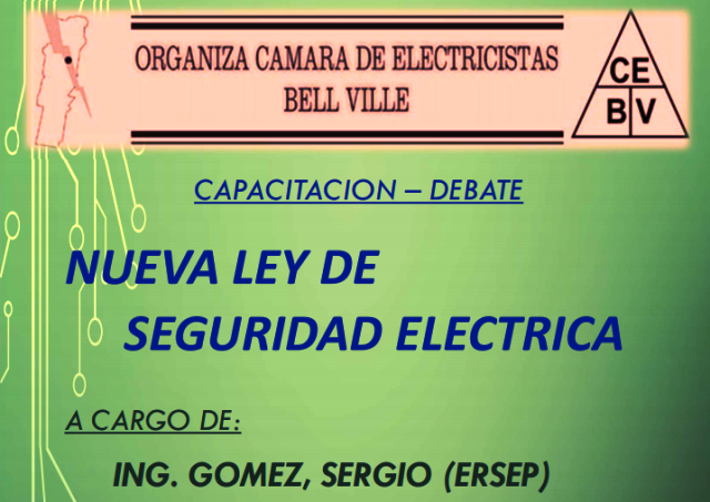 Este miércoles, Charla-Debate sobre la Nueva Ley de Seguridad Eléctrica en Bell Ville