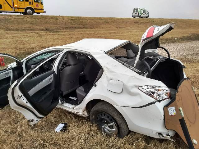 Vuelco en solitario de un Toyota Corola en el Km 496 de la autopista Cordoba - Rosario