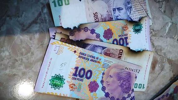 El cajero le dio billetes prácticamente destruidos a un cliente