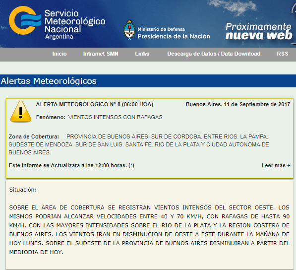 Alerta Meteorológico, abarca al centro de la provincia de Córdoba