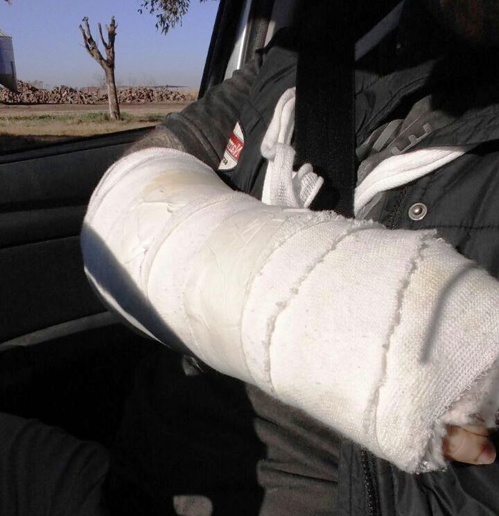 Joven Bombero de Villa Nueva recibió un fuerte golpe que le produjo una fractura en su brazo.