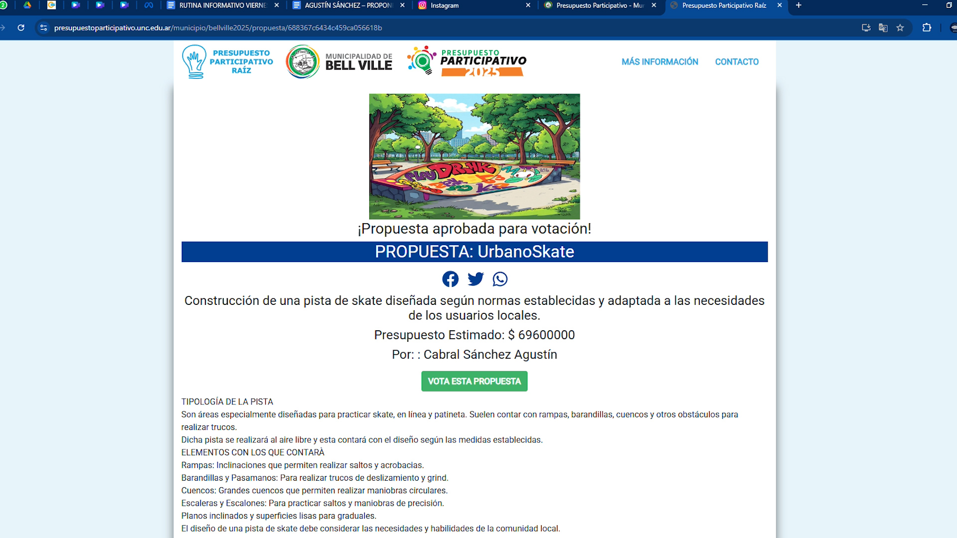 Presupuesto Participativo 2025: proponen construir una pista pública de skate